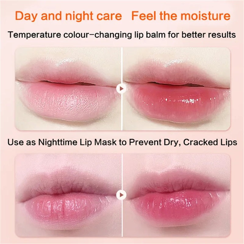 TEMPERATURE-ACTIVATED COLOR CHANGE - One of the unique features of this lip balm is its ability to change color in response to the temperature of your lips. As the balm interacts with the warmth of your skin, it undergoes a subtle color transformation, creating a personalized and dynamic look.