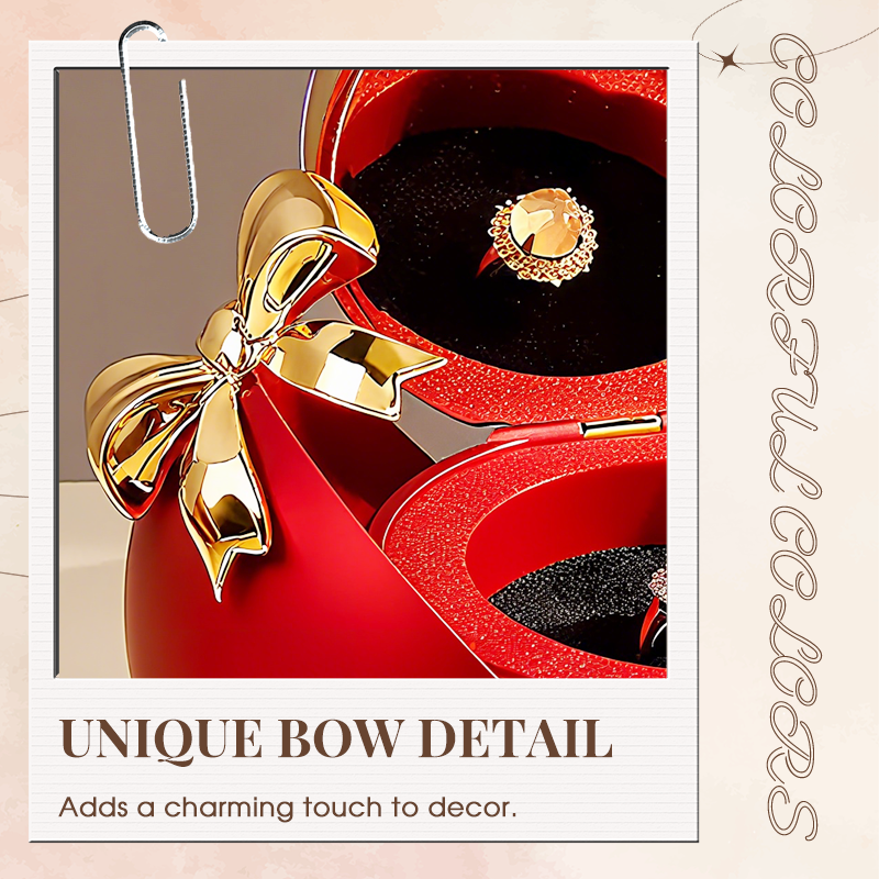 CHIC BOW DETAIL: The spherical shape of the jewelry box is complemented by a charming bow decoration, adding a playful yet sophisticated touch. This unique design element makes the box not only functional but also a beautiful decorative piece that can enhance any room's decor. It is a delightful gift for yourself or someone special.