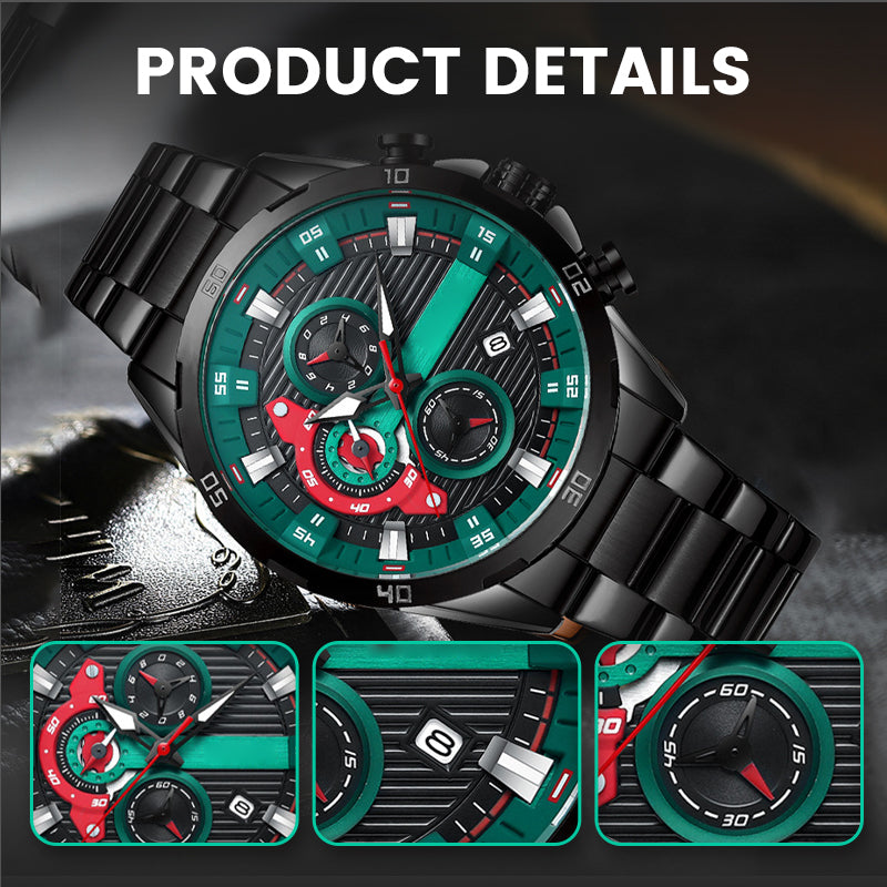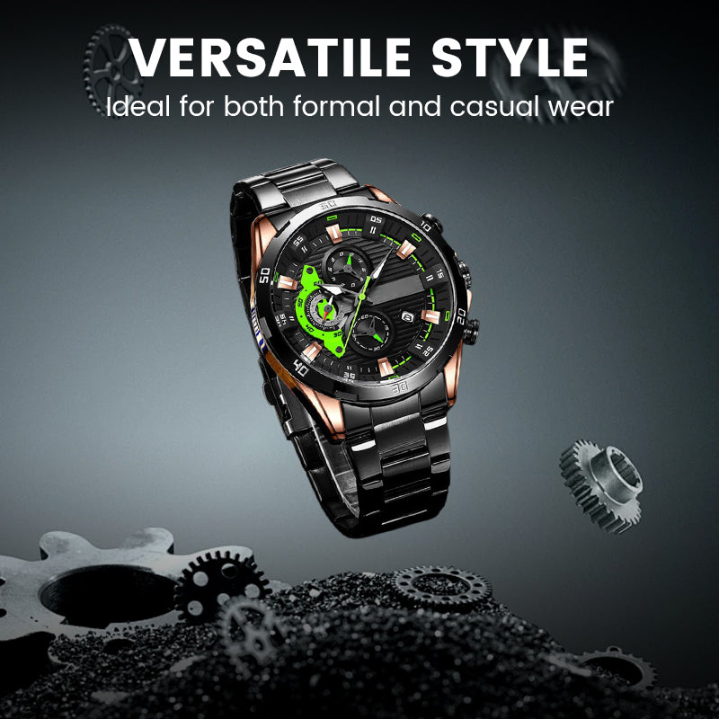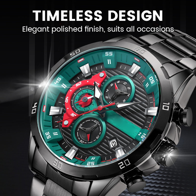 MULTI-FUNCTIONAL DIAL – Equipped with a calendar display, three sub-dials, this watch offers enhanced time accuracy. The luminous hands ensure visibility in low-light conditions, so you’ll always know the time, day or night.