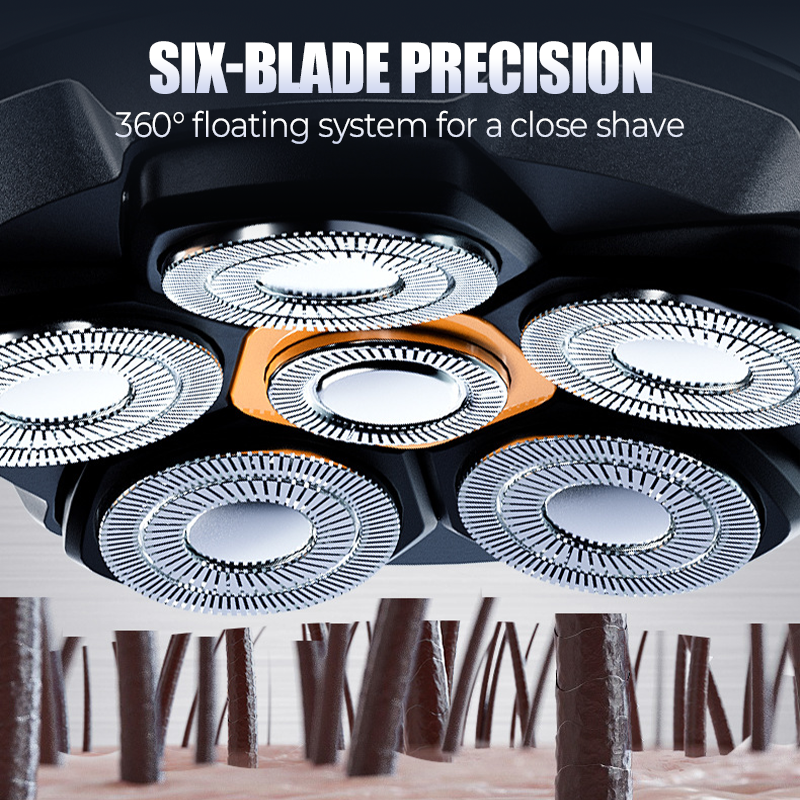 6-BLADE PRECISION SHAVING: Equipped with six ultra-sharp blades for a clean, close shave. The blades work in unison to catch every hair in one smooth motion—no pulling, no missed spots.